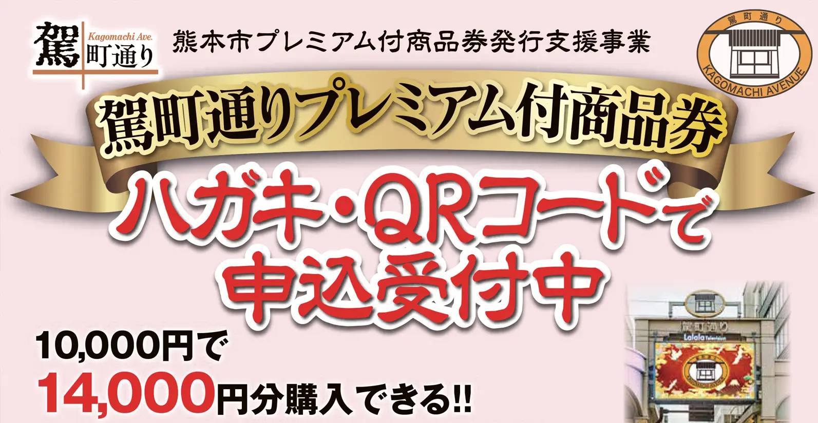 10,000円で14,000円分購入できる!! 駕町通りプレミアム付商品券の抽選申し込みを受け付けています。 申込日: 令和8年2月21日(土)0時~2月27日(金)まで 販売価格: 1口10,000円(1,000円券×14枚) 詳しい内容はチラシをご確認いただき、 リンク先のフ...