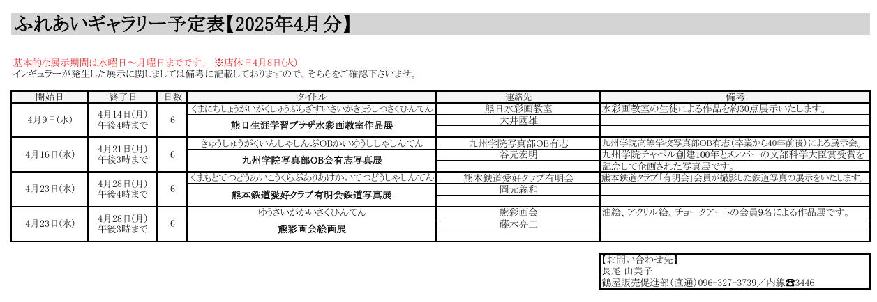 ふれあいギャラリー予定表